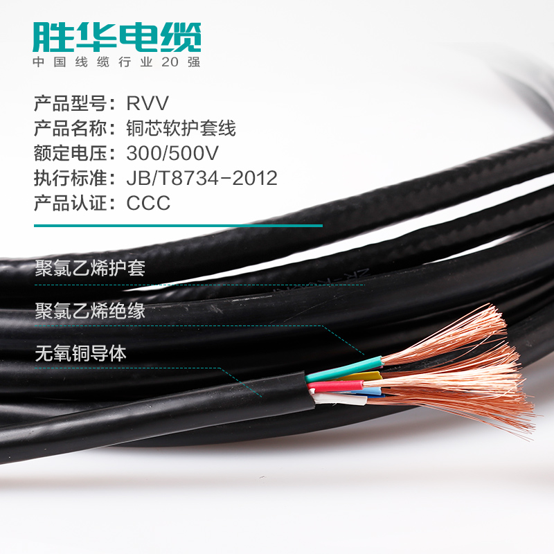 勝華軟護(hù)套線RVV2 3 4芯11.52.5平方銅電線電源線信號控制線